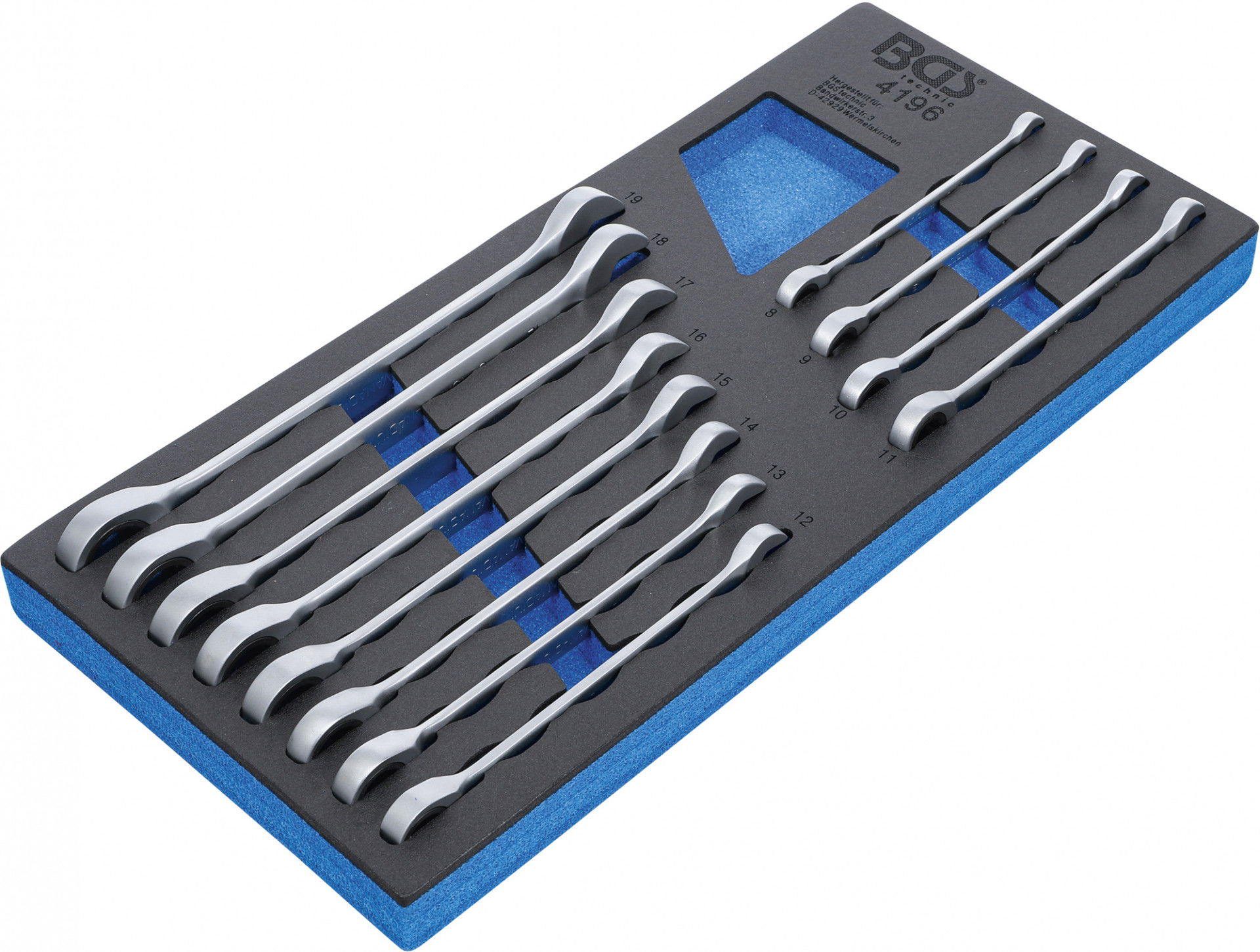 BGS Technic 9-4196 1/3 EVA tálcás racsnis csillag-villáskulcs készlet, metrikus, 12 részes *