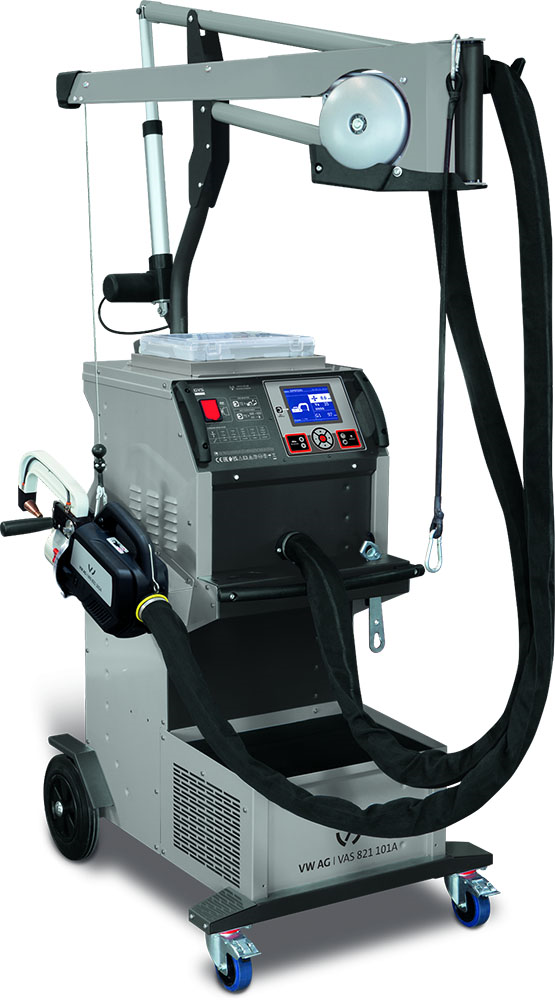 • Távoli vezérlés a karon (túlnyitás, hegesztés, beállítási visszaigazolás).